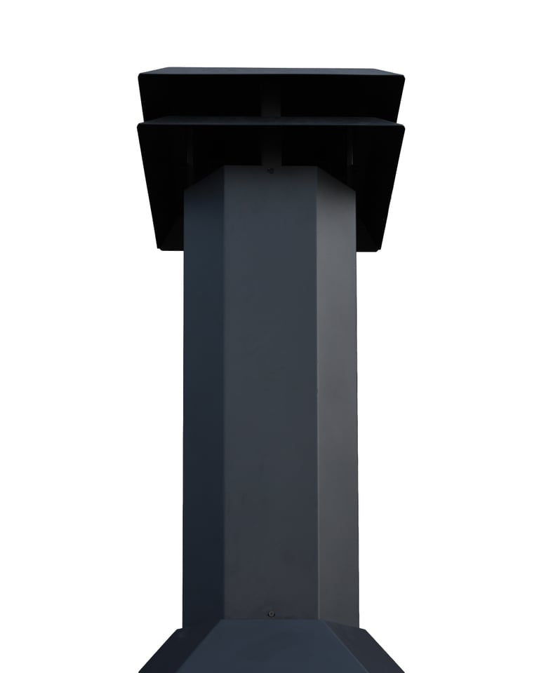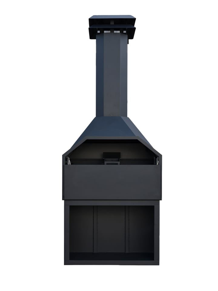 Bij inbouw wordt bovenop de braai een koppelstuk geplaatst voor een Ø250 mm rookgasafvoer, zodat de rook veilig